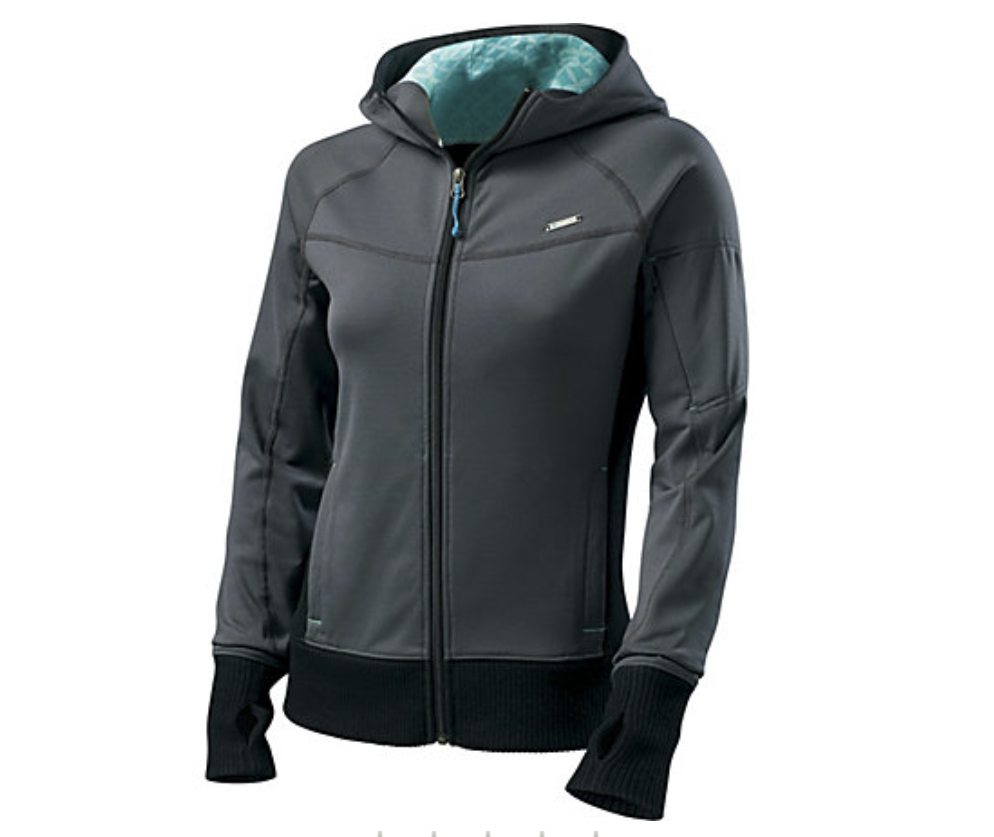Note, this is a VERY different design than the Men’s Podium Jacket, which is pretty much a standard zippered hoodie of the same fabric and price point.