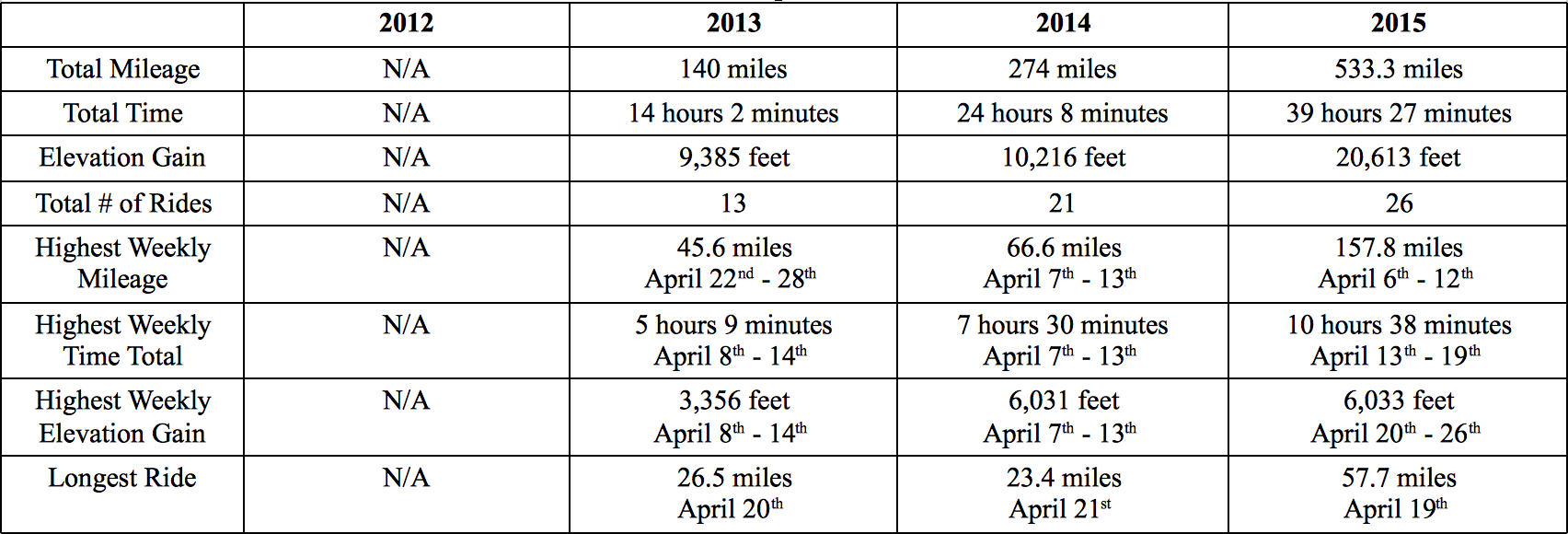 Training continued to go alright, and I got in some big rides. It’s the start of that in between season where the trainer can’t be put away quite yet, but I’m doing more outdoors, such as using certain mountain bike trails for interval repeats, which is actually pretty awesome!