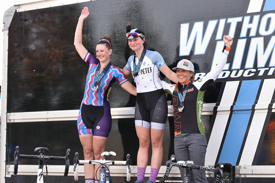 - Friday SS4/5 Race: We started behind the SW4 and SW3 groups (and other men’s groups), which led to a LOT of course traffic. Being female in a male category, I more than once had to (sometimes sternly) explain to SW3/4 racers that I was not in their category. Didn’t stop one chick from beating me over the head with her bike on the run up repeatedly, but I digress. A positive is that we don’t necessarily deal with course traffic a lot in CO cross races, so it was a good experience. First lap in I cut a corner a bit close to the hard fencing near the pit area, and a metal tab that was sticking out jabbed into my butt and tore the right side of the bibs I was wearing off (and they weren’t mine… sad, as I was borrowing a kit), which left me indecently exposed for the rest of the race. Overall, I was happy with how the race went, and assumed I had finished in 4th place… so I went quickly to my car and covered my butt up with some clothes and took to recovering before the elite race. That’s when a friend congratulated me on my podium finish… I had come in 3rd!