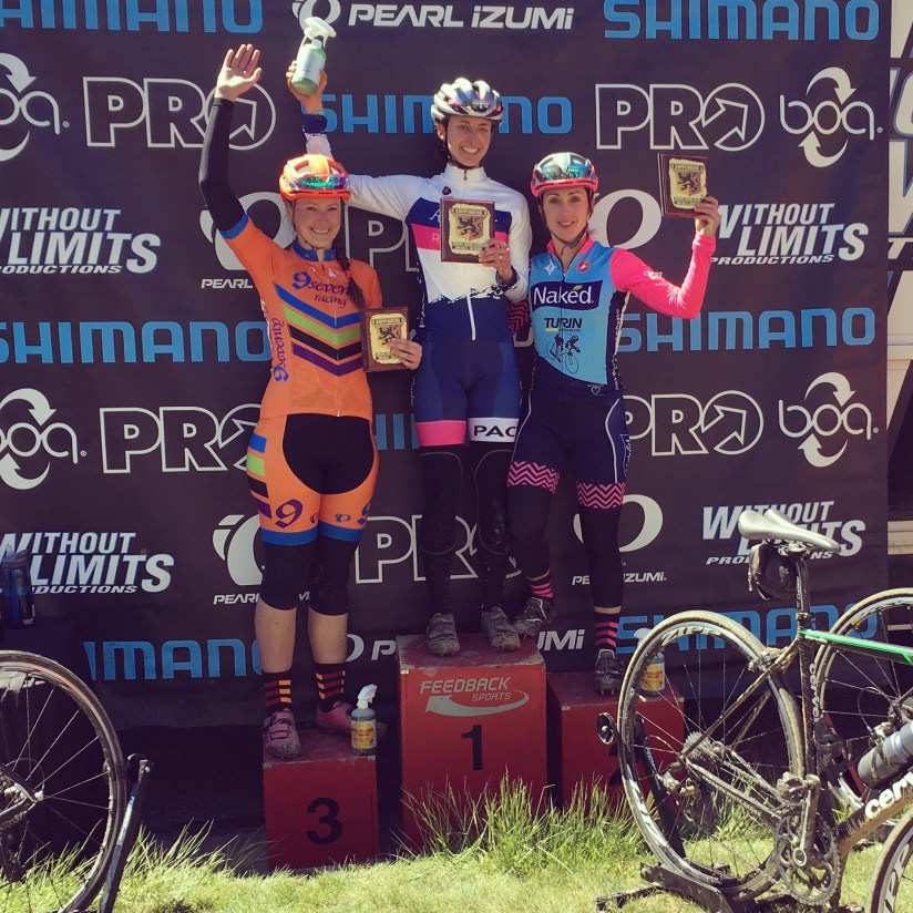 On the last bit of pavement on the final lap Natalia pulled away from me. The finishing straight is after a very high speed corner and I can’t corner fast on the road (well… won’t corner fast. I’m a wimp), so I knew she’d get me there anyway. I was SO DAMN HAPPY to cross the finish line in 3RD PLACE!!!! My very first USAC road podium, in my 3rd cat 3 race in my 3rd time racing Koppenberg 🙂
