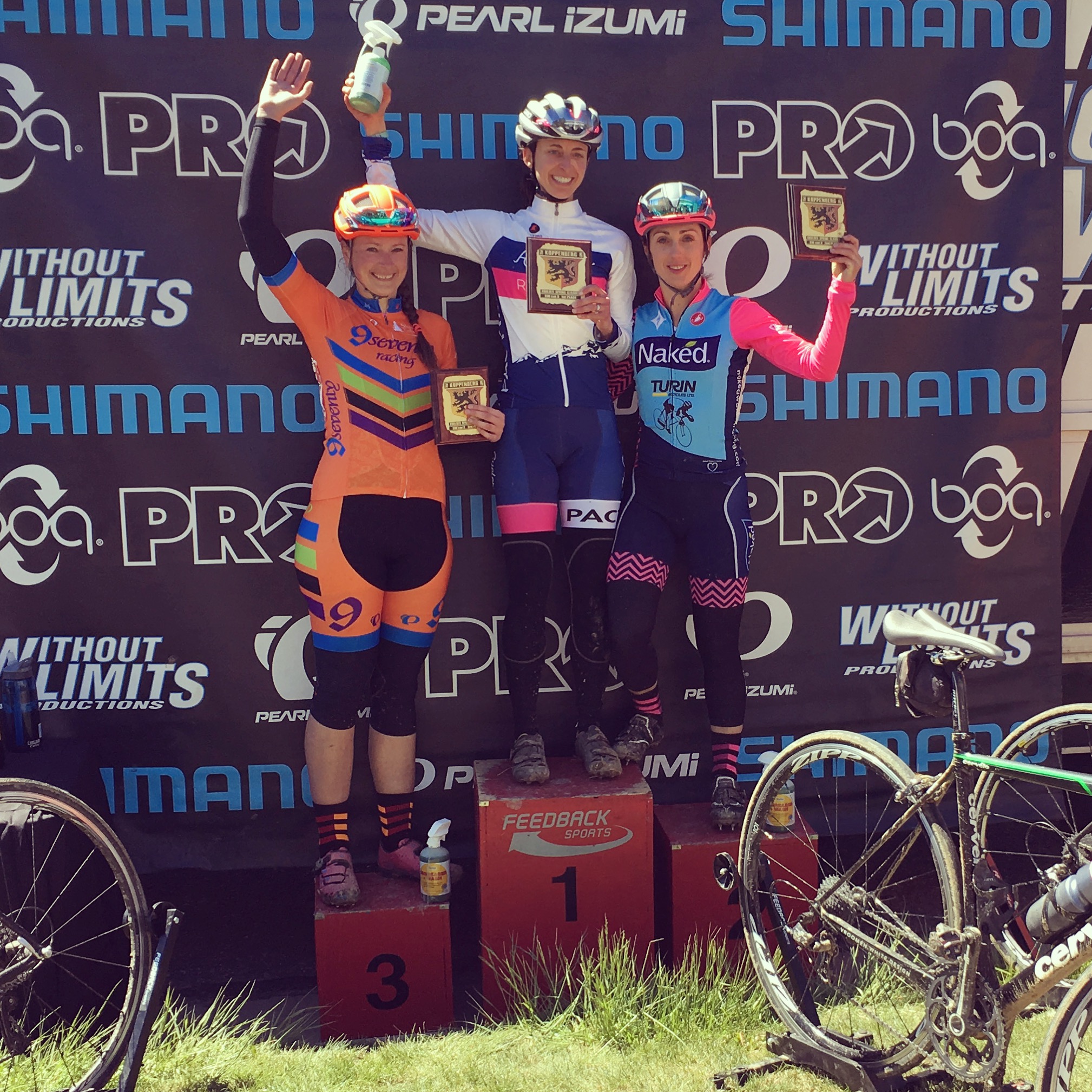 On the last bit of pavement on the final lap Natalia pulled away from me. The finishing straight is after a very high speed corner and I can’t corner fast on the road (well… won’t corner fast. I’m a wimp), so I knew she’d get me there anyway. I was SO DAMN HAPPY to cross the finish line in 3RD PLACE!!!! My very first USAC road podium, in my 3rd cat 3 race in my 3rd time racing Koppenberg 🙂