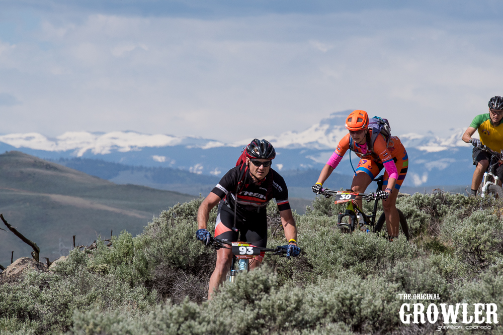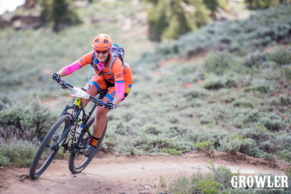 The climbs out of the aid station are a bit heart breaking, but I plodded on, happy to have the stinging pain of frozen skin on my back from the ice and knowing there were some serious descents coming up. Last year I had some pretty serious cloud cover at this point which helped out mentally and physically, but this year was nothing but hot sun and blue skies. On the first long descent I started catching sprint and kid racers, which was a little hairy due to the speeds I would come up on them. Luckily everyone was great with moving aside! Down down down… aching feet and sore hands as they chaffed with my wet gloves. I never wanted the descending to be over so much in my life! Finally the climb up Bulldog arrived. Last year I was quite proud of myself for clearing the 13% average climb, but I rode maybe the first third of it this year and jumped off and walked. Walking kinda felt good, and I really had nothing to prove by riding it!